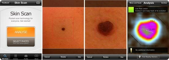 - Skin Scan – это приложение, которое позволяет пользователям сканировать и контролировать родинки с течением времени с целью предотвращения злокачественного рака кожи. Приложение сообщает о целесообразности визита к врачу.