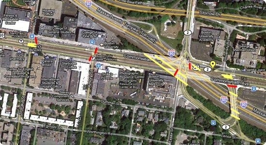 - Еще в марте 2011 года прошел пробный запуск разработанного в Бостоне приложения Street Bump, которое использует датчики на смартфонах, чтобы передать городским чиновникам карту состояния дорог в режиме реального времени. Приложение для Android использует акселерометры и технологию GPS в телефонах пользователей для регистрации времени и места встречи автомобиля пользователя с выбоиной, информацию о которой оно автоматически регистрирует и передает.