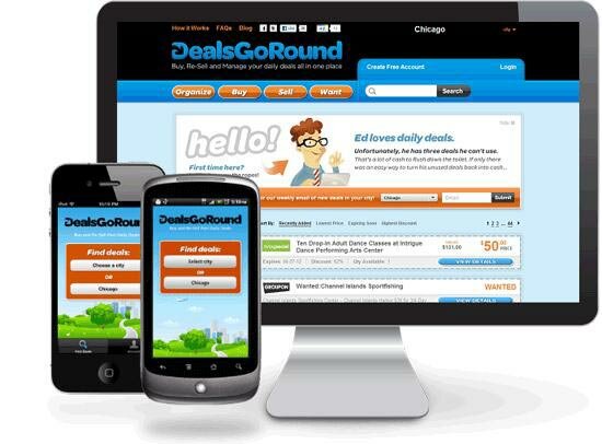 - Американская компания DealsGoRound позволяет пользователям перепродавать и покупать истекшие предложения Groupon, LivingSocial и BuyWithMe.